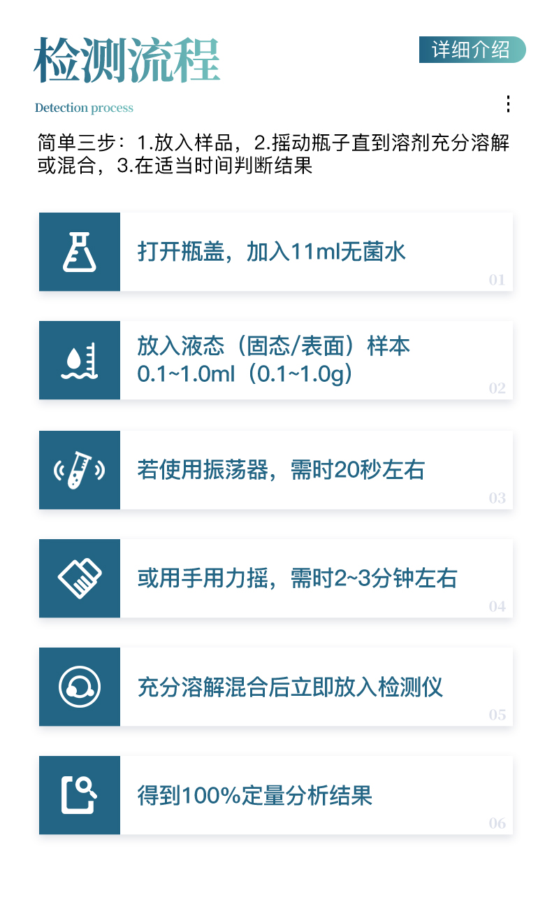 2、 样本在检测时无需任何的前处理过程,直接丢入检测瓶即可;