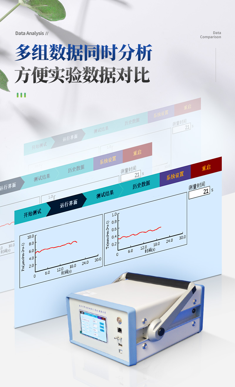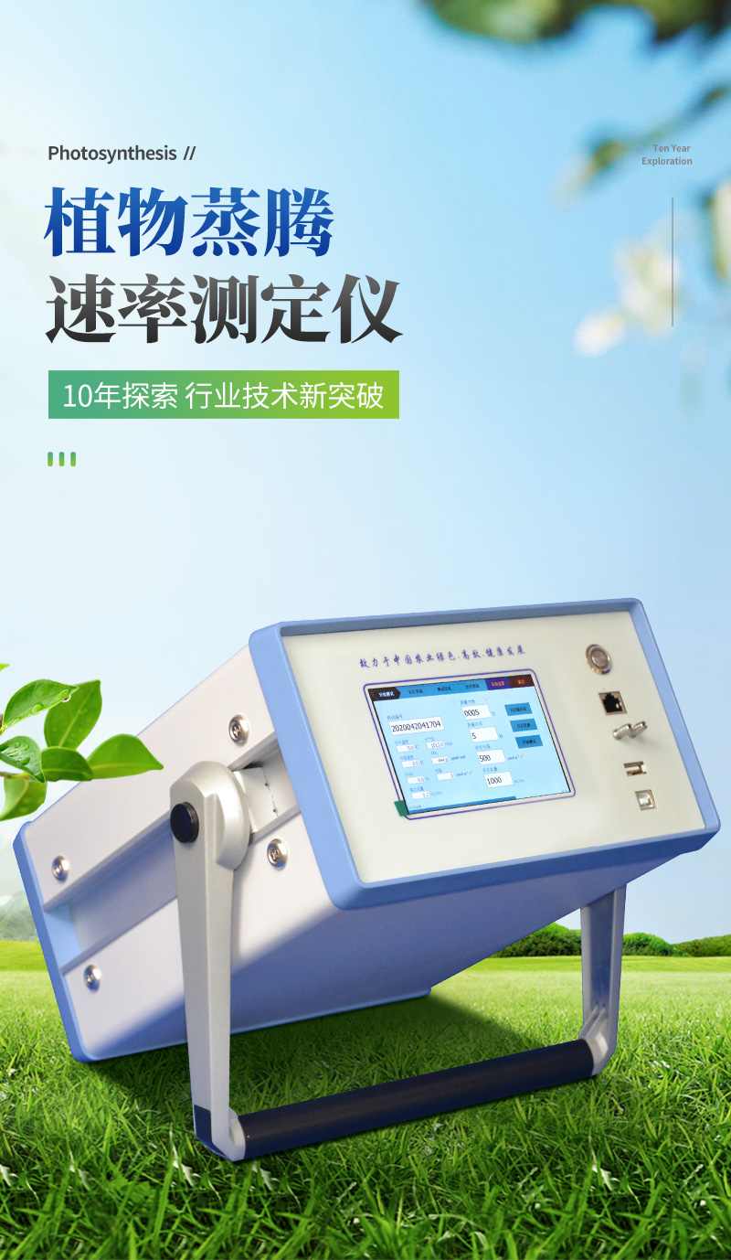 植物蒸腾速率是指水分通过植物体内时,经过植物体表(主要是叶片)以气体的方式散发到大气中的速度。植物的蒸腾作用能产生蒸腾拉力,蒸腾拉力是植物被动吸水与转运水分的主要动力,这对高大的乔木尤为重要;蒸腾作用可以促进木质部汁液中物质的运输,土壤中的矿质盐类和根系合成的物质可随着水分的吸收和集流而被运输和分布到植物体各部分去;蒸腾作用还可以降低植物体的温度,防止叶片被灼伤。蒸腾作用的正常进行有利于CO2的同化,这是因为叶片进行蒸腾作用时,气孔是开放的,开放的气孔便成为CO2进入叶片的通道。因此植物蒸腾速率的测量对于农业科研、教学、园艺研究、林业研究等具有重大意义。