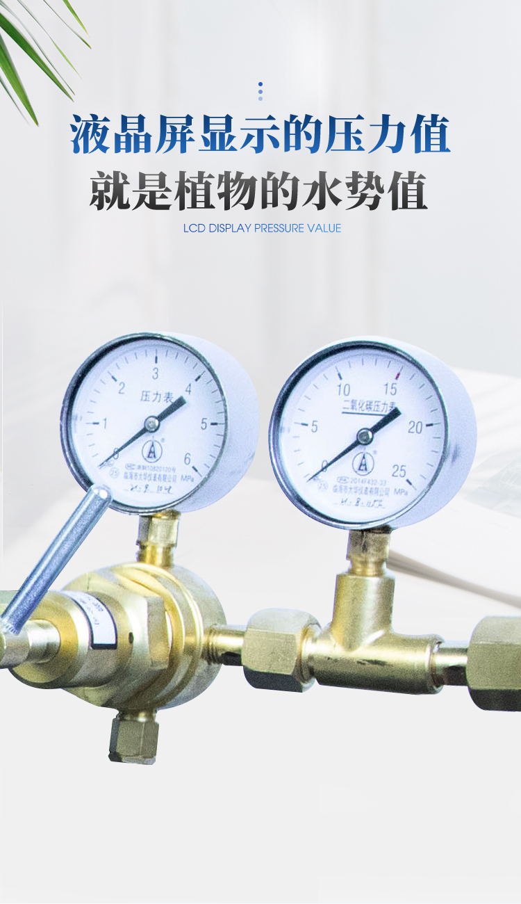 | 3、MPa与Bar两种测量单位可供选择 | 4、液晶屏显示的压力值就是当前植物的水势值 |